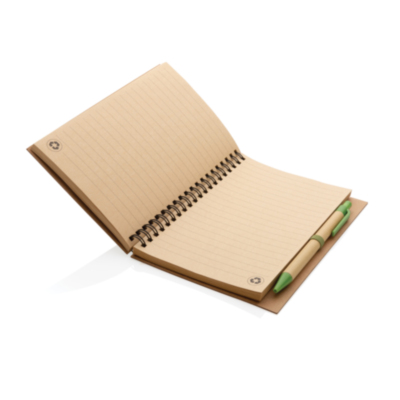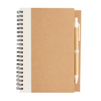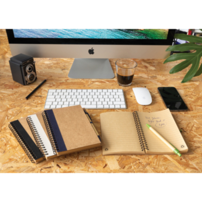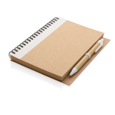 Lleva un registro de tus pensamientos, notas, planes, tareas y más con este cuaderno de espiral kraft con bolígrafo. El cuaderno presenta papel reciclado color crema rayado de 70 gr con 70 hojas/140 páginas. El cuaderno tiene un bolígrafo kraft de color a juego. La longitud de escritura del bolígrafo es de 600 m con tinta Dokumental alemana azul.
