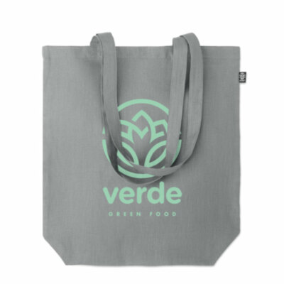 Bolsa de compras de tela 100% de cáñamo con asas largas con fuelle de 10 x 28 cm en la parte inferior. 200 gr/m².