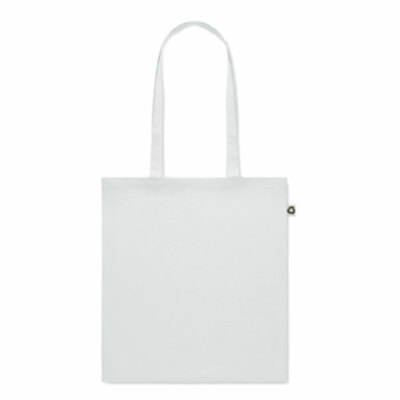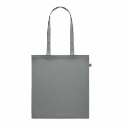 Bolsa de la compra de algodón reciclado pre-consumo (65% algodón reciclado, 35% algodón normal) con asas largas. 140 gr/m².