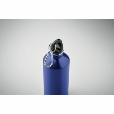 Botella de pared simple de acero inoxidable reciclado (90% de acero inoxidable reciclado y 10% de acero inoxidable) con mosquetón. 500 ml. Impresión por sublimación disponible sólo en el artículo blanco. Antifugas. Al tratarse de un vaso de una sola pared, puede producirse una transferencia de calor.