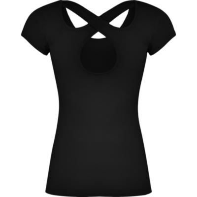 Camiseta de manga corta y escote redondeado en la parte delantera. Detalle espalda cruzada con escote en forma de lágrima.