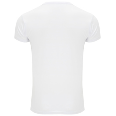 Camiseta de manga corta, cuello redondo doble. Cubrecosturas reforzado en cuello y hombros, tejido tubular.
