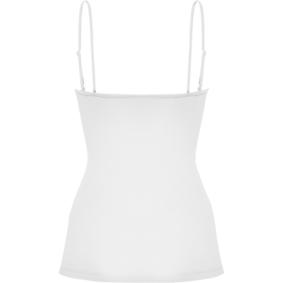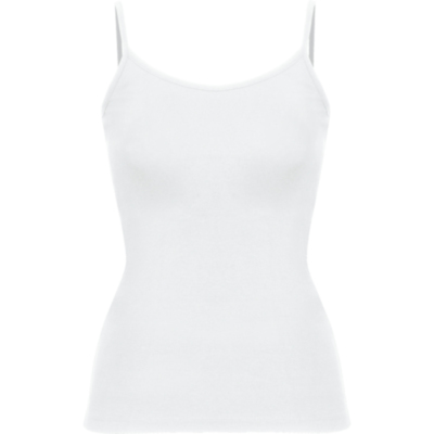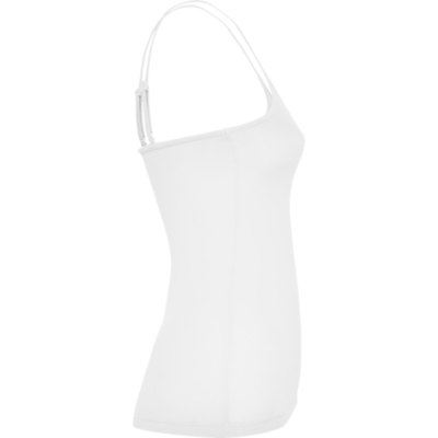 Camiseta de mujer con tirantes finos. Detalle en los ajustadores de plástico para el tirante. Corte entallado con costuras laterales.