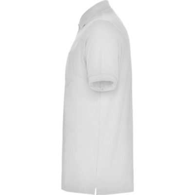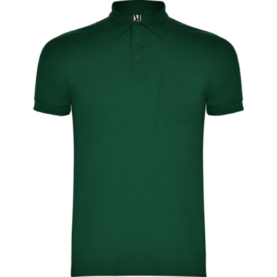 Polo de manga corta con bolsillo, cuello y bocamangas acanalado y tapeta de 3 botones. Cubre costuras reforzado en cuello.
