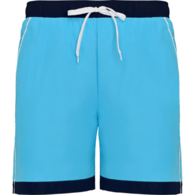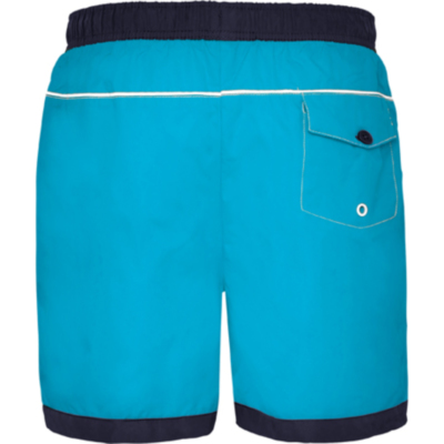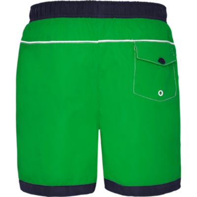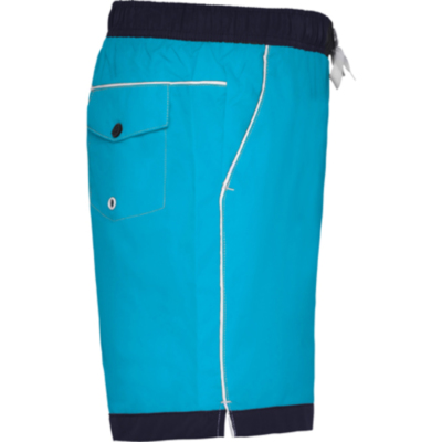 Bañador largo. Cordón ajustable en contraste. Bolsillos laterales con vivo a contraste y bolsillo trasero con tapeta, botón y ojal de desagüe. Apertura lateral en bajo. Slip interior y fondo bolsillos en rejilla.