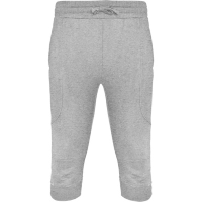 Bermuda deportiva para hombre con cinturilla elástica ancha ajustable mediante cordón, bolsillos laterales con vivo y bolsillo de parche trasero. Paneles laterales alargados con forma curva. Rodillas con pinzas a cuatro esquinas. Bajos de punto anchos a desnivel.
