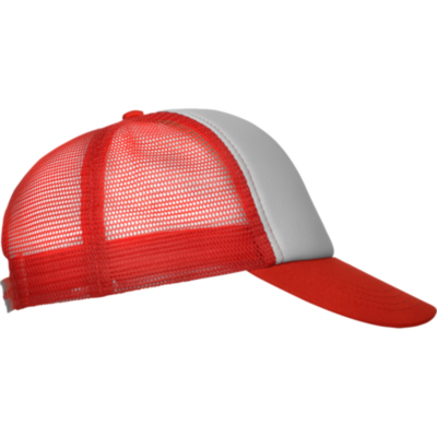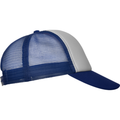 Gorra de estilo actual y moderna, con la copa en tejido de rejilla transpirable, cierre solapado de material plástico, cinta interior antisudoral. Cubrecosturas interiores del mismo tono que la prenda. Visera a cuatro costuras y botón de adorno antioxidab