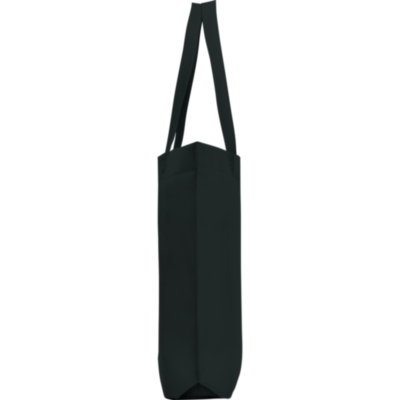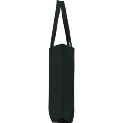 Bolsa termosellada con fuelle hexagonal en la base, fabricada en tejido non woven (no tejido), con asa larga de cinta en el mismo color.