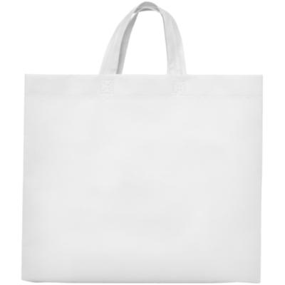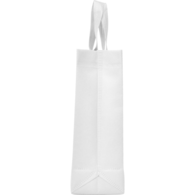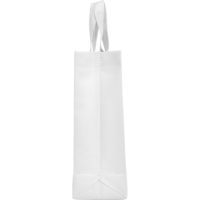 Bolsa termosellada con fuelle en los laterales y en la base, fabricada en tejido non woven (no tejido), con asa corta de cinta en el mismo color.