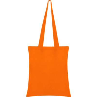 Bolsa fabricada en tejido de algodón en color, con asa larga de cinta en el mismo color.