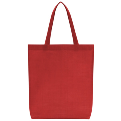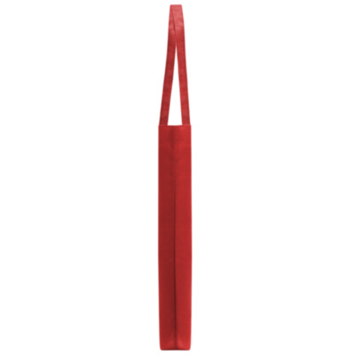 Bolsa cosida en tejido non woven (no tejido) con efecto metalizado. Asa larga de cinta en el mismo color.