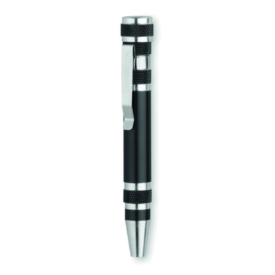 Aluminum multitool with 6 accessories in a wide range of bright metallic colors. With non-slip body and metal clip. Includes 6 flat and cross-head screwdriver heads.
