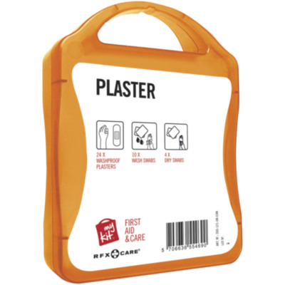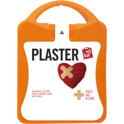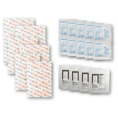 Kit de apósitos adhesivos ideal para tener cerca de ti. Esetarás siempre preparado para cualquier corte o pequeña herida. Contenido: 24 apósitos adhesivos resistentes al agua, 10 toallitas limpiadoras, 4 toallitas secas. Todos los complementos de primeros auxilios cumplen todas las normativas de la UE. El precio incluye impresión a todo color en la etiqueta.