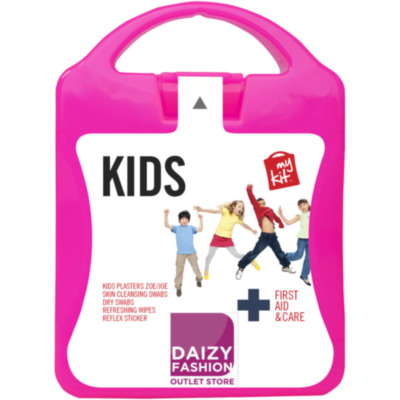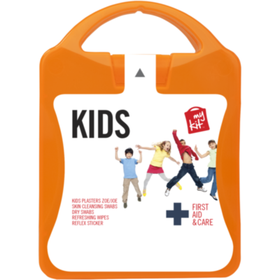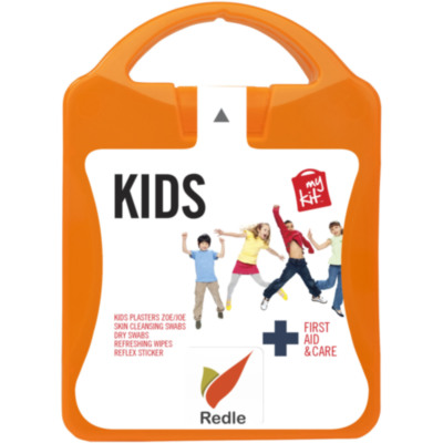 Kit ideal para ambientes con niños. Con este kit estarás preparado para pequeños accidentes. Contenido: 12 apósitos adhesivos infantiles, 4 toallitas limpiadoras, 2 toallitas secas, 2 toallitas refrescantes, 1 reflex sticker. Todos los complementos de primeros auxilios cumplen todas las normativas de la UE. El precio incluye impresión a todo color en la etiqueta.