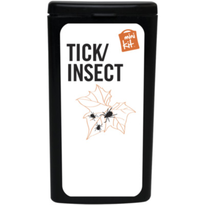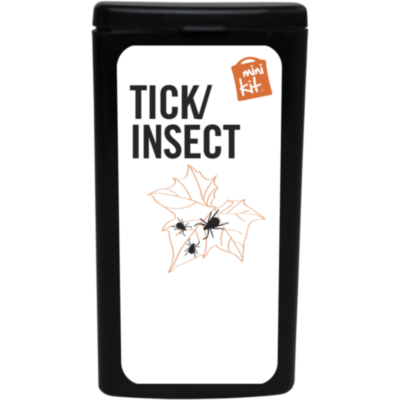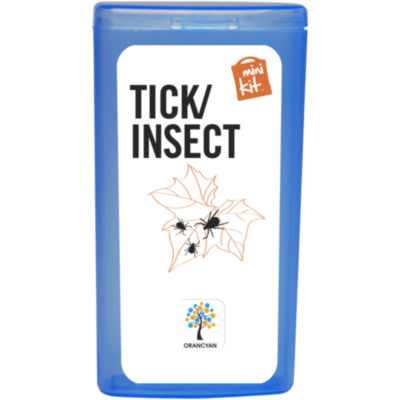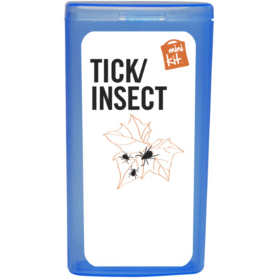 Kit ideal para llevar encima que te prepara para picaduras. Contenido: 1 quita garrapatas azul (humano), 1 toallita repelente de insectos, 2 toallitas limpiadoras, 10 apósitos adhesivos resistentes al agua. Todos los complementos de primeros auxilios cumplen todas las normativas de la UE. El precio incluye impresión a todo color en la etiqueta.