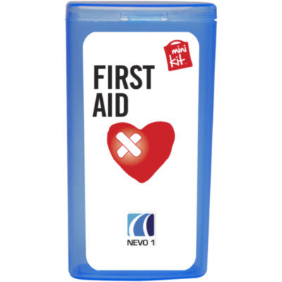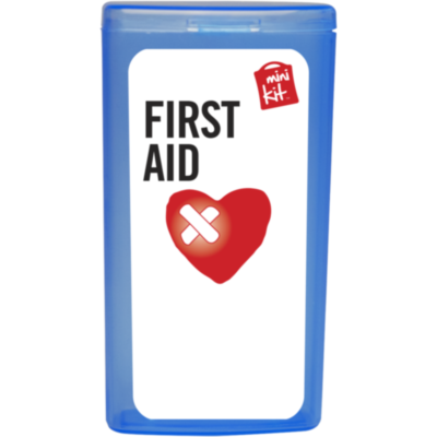 Kit básico de primeros auxilios. Ideal por su tamaño para llevar siempre encima y estar preparado para pequeñas heridas. Contenido: 5 apósitos adhesivos resistentes al agua, 2 toallitas limpiadoras. Todos los complementos de primeros auxilios cumplen todas las normativas de la UE. El precio incluye impresión a todo color en la etiqueta.