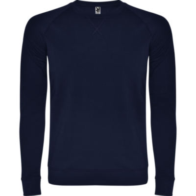 Raglan long-sleeve cotton sweatshirt. 1x1 rib in collar, cuffs and waist. Crew neck with crossed seam embellishment and reinforced covered seams on the inner collar.