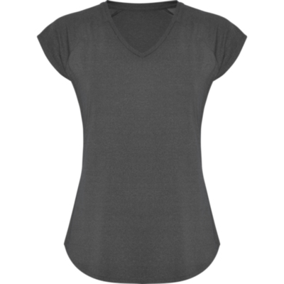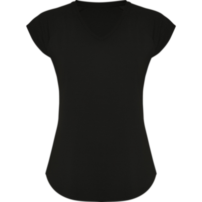 All-sports technical t-shirt for women with raglan style short-sleeve. V-neck. Polyester fabric, cotton feel. Fitted cut.