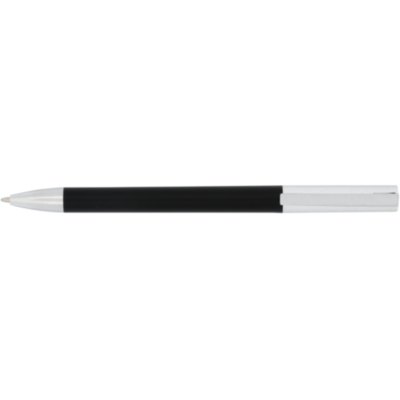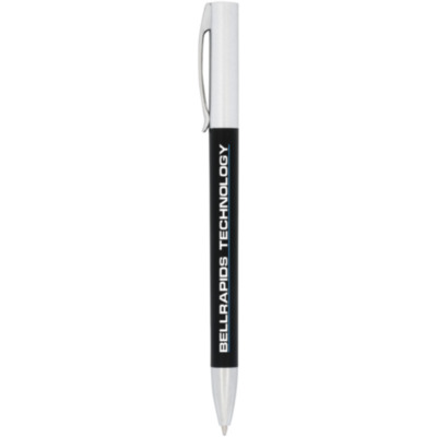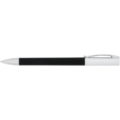 Twist action ballpoint pen with metallic clip and metallic finishing.