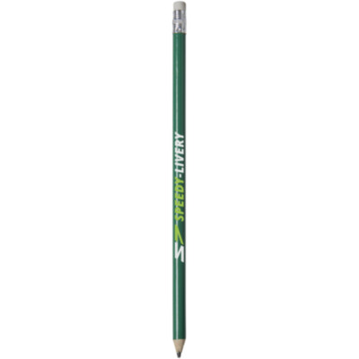 Wooden pencil with coloured pencil and white eraser. Unsharpened.