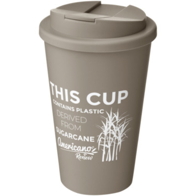 Double-wall insulated tumbler with a secure twist-on spill-proof lid and 350 ml capacity. Contains 25% plastic derived from sugar cane. This renewable source absorbs carbon dioxide whilst growing and is a by-product of the sugar industry. The use of sugar cane means less oil is used in the manufacture of each tumbler. The tumbler is 100% recyclable and packed in a recycled PE plastic bag. Made in the UK. BPA-free. EN12875-1 compliant, dishwasher safe, and microwave safe.