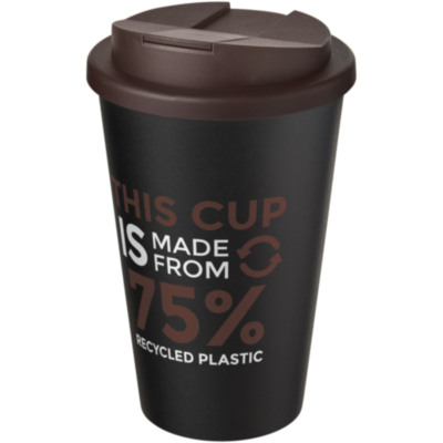 Double-walled tumbler made from recycled plastic, with a twist-on spill-proof lid and black inner layer. The tumbler is 75% recycled in total, with a recycled mug and standard lid. The lid clips closed to better prevent spillages, and is manufactured without silicone for a fully recyclable mug. Due to the nature of recycled plastic, there may be small marks or some colour variation. EN12875-1 compliant, dishwasher safe, and microwave safe. The tumbler has a volume capacity of 350 ml and is fully recyclable. Made in the UK. Packed in a recycled PE plastic bag. BPA-free.
