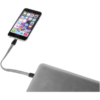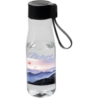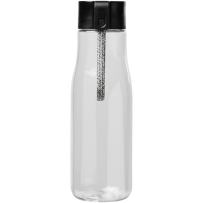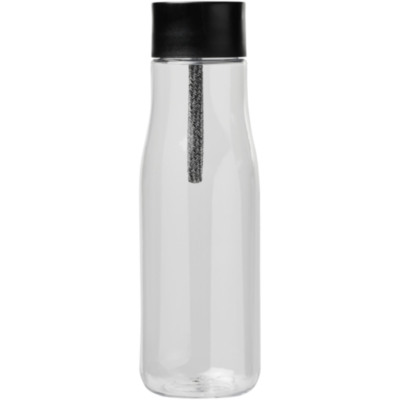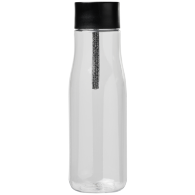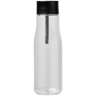 Single-walled water bottle in durable Tritan™ material. Shatter, stain, and odour resistant. Features a screw-on lid with a detachable 3-in-1 charging cable. Charging cable has a 2-in-1 integrated tip and Type C adapter stored in the lid. Pointing the 2-in-1 adapter up with the side of no pin on it to charge Apple devices, and the other side of pins on it to charge Android devices. Volume capacity is 640 ml.