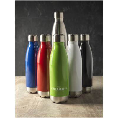 Double-wall stainless steel vacuum construction, which allows beverages to stay cold for 15 hours or hot for at least 5 hours. The construction also prevents condensation on the outside of the bottle. Stainless steel screw-on lid. Volume capacity is 510ml.
