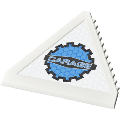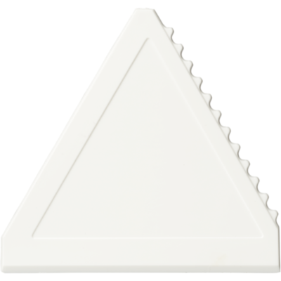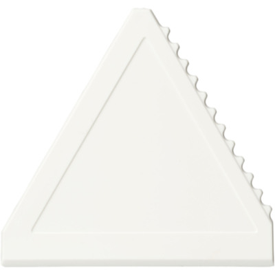 Frosty triangular ice scraper for windshield scraping.