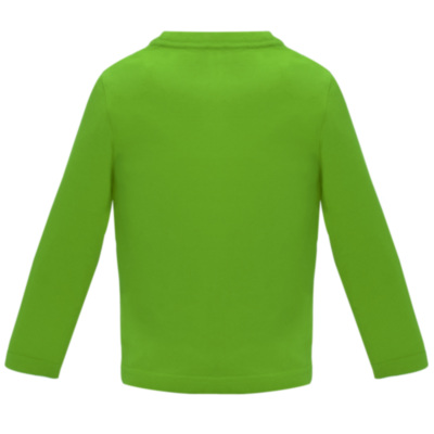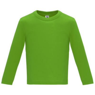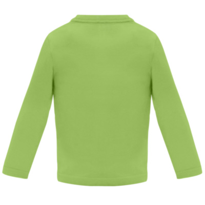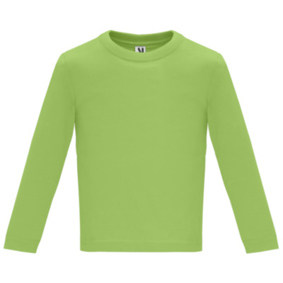 Long-sleeve t-shirt, special for babies. Fine gauge fabric with compacted finishing. Crew neck and placket in shoulder with snap buttons from size 6M to 18M. Size 2 years with no placket in shoulder. Side seams.