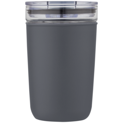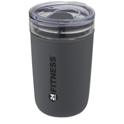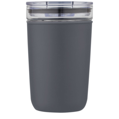 Glass tumbler protected by a recycled plastic case. The tumbler is made from 100% durable borosilicate glass which conserves the freshness of the beverage, and it does not contain any harmful chemicals. BPA-free, tested and approved under German Food Safe Legislation (LFGB). Tested and approved for phthalates content according to REACH regulations. The tumbler fits under most coffee machines. Volume capacity is 420 ml. By removing the plastic case, the item is dishwasher safe. Presented in a recycled cardboard gift box.