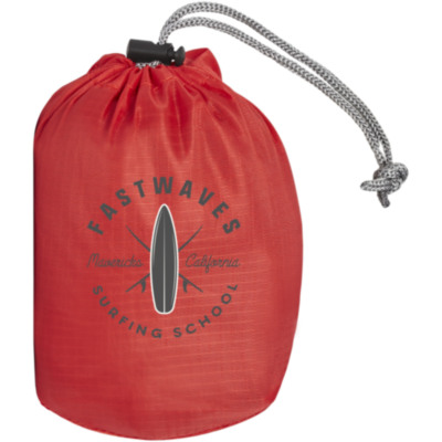 Compact and light foldable backpack. Large main compartment with buckle closure in black. Features an adjustable string in the front panel, adjustable straps and a small pocket inside where the bag can be folded into and stored.