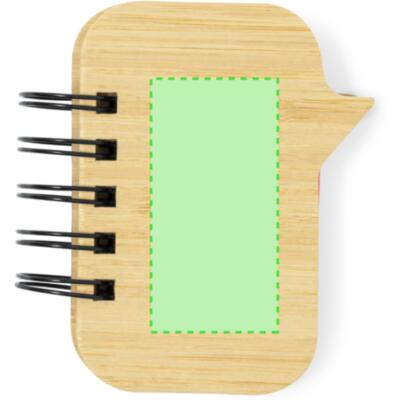 Bloc de notas con anillas y de tapas rígidas elaboradas con bambú en forma de globo speech. Interior con 25 notas adhesivas de 5x7,5cm y 125 mininotas adhesivas de 1,5x5cm en variados colores. Presentado en bolsa individual reciclada.Materiales como el bambú fomentan la utilización de materias primas naturales, reduciendo las emisiones contaminantes. Proviene de una planta de gran resistencia y versatilidad, con crecimiento y regeneración rápidos, siendo una excelente alternativa al uso de madera tradicional.
