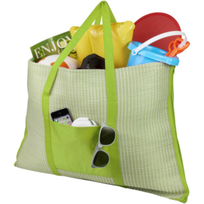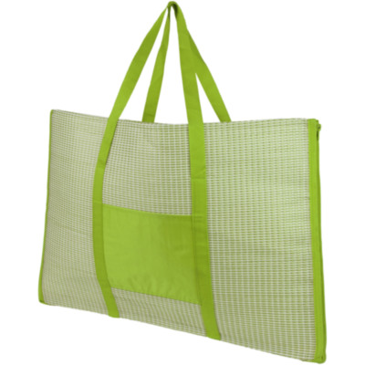 2-in1 foldable beach mat that folds up into a handy tote bag of 60x44 cm. Includes pocket and inflatable pillow. Drop down height handles 28 cm. .