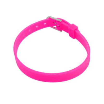 PVC bracelet in bright fluorescent finish. With adjustable buckle closure and in a wide range of tones.
