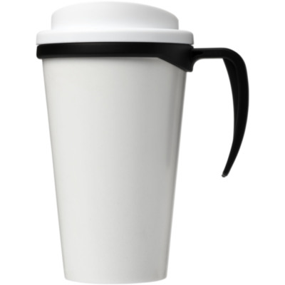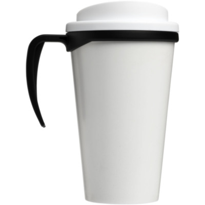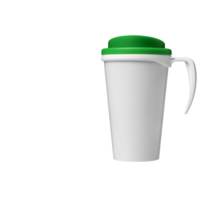 Double-wall insulated mug with twist-on lid and integrated handle. The outer layer of the mug is made from recycled plastic. Mug features a full colour wraparound design moulded to the product, making it long-lasting and durable. EN12875-1 compliant, dishwasher safe, and microwave safe. Volume capacity is 350 ml. Mug is fully recyclable. Mix and match colours to create your perfect mug. Contact customer service for additional colour options. Made in the UK. Presented in a white gift box. BPA-free.