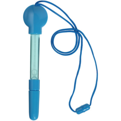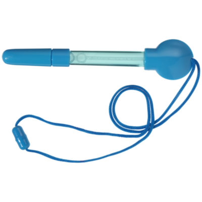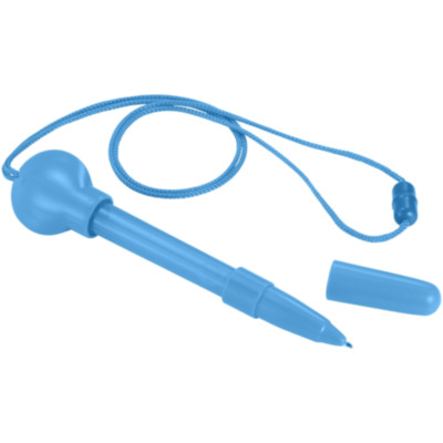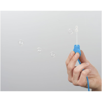 Ballpoint pen with bubble dispenser, removable cap, wand, and a breakaway cord. Includes 5 ml liquid.