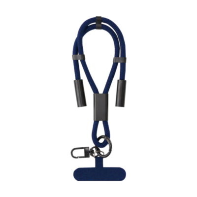 Pulsera con función de soporte y cable cargador, fabricado en una combinación de poliéster RPET. Diseñado para colocarse fácilmente entre la funda y el smartphone gracias a su accesorio de transporte. Incluye cinta a juego, mosquetón metálico giratorio en color negro y accesorio para ajuste en muñeca. Ofrece funcionalidad de carga y traspaso de datos, con entrada Tipo C 60W, y salidas Tipo C.