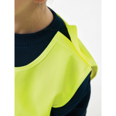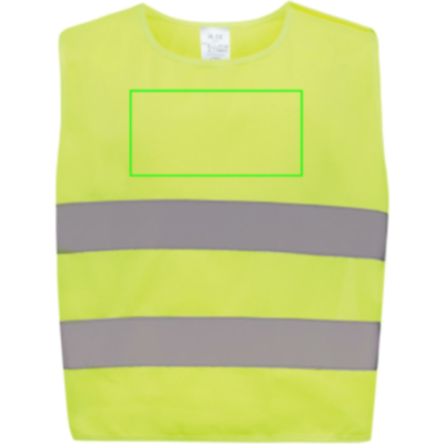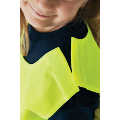 Chaleco de alta visibilidad talla XS diseñado para niños de 3 a 6 años, con un rango de altura de 90 a 140 cm. Este chaleco cuenta con espacio para decoración tanto en la parte delantera como en la trasera. Está equipado con cierres de gancho y bucle en los hombros y en la parte inferior para mayor seguridad y fácil colocación. Las bandas elásticas del lado opuesto proporcionan flexibilidad, lo que permite llevarlo cómodamente sobre abrigos gruesos. Este chaleco ha sido sometido a pruebas rigurosas y cumple con la norma EN 17353:2020 Tipo AB3. Además, cumple con las directrices de EPI especificadas en el Reglamento (UE) 2016/425 para equipos de protección personal de categoría II. Fabricado con PET reciclado certificado GRS. Contenido reciclado total: 55% basado en el peso total del artículo. La certificación GRS garantiza una cadena de suministro de materiales reciclados completamente certificada.
