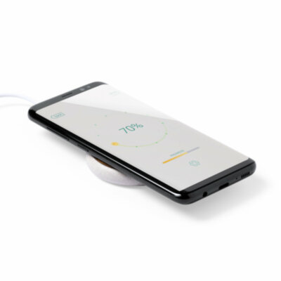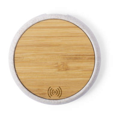 Wireless charger with a circular design. Charging surface in bamboo and shell made of wheat straw, in order to encourage the use of natural raw materials and reduce contaminant emissions. Led indicator, including micro USB charging cable and compatible with devices equipped with wireless charging technology. Safety protection to avoid overheating, overcharging and short-circuiting. Presented in an attractive box of nature design.
