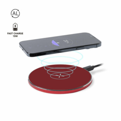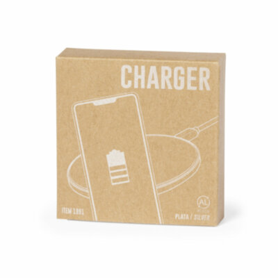 Wireless charger 15W in round design. Made of recycled aluminium, a material with almost infinite recycling possibilities, keeping its original properties and consuming less energy in this process. Compatible with devices equipped with Qi wireless charging technology. Non-slip base, with Type-C charger cable included, and available in a wide range of colours. Presented in an individual kraft design box, with instruction manual in English and Spanish. Manufactured according to RoHS standards and in compliance with the following safety requirements: Overheating protection system. Over-charge protection system. Blocking system to prevent short circuits.