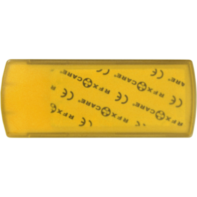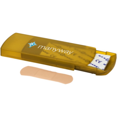Portable mini box containing 5 adhesive plasters sized 56x19mm, intended to use on minor cuts and abrasions. The plaster box offers a large decoration area. The adhesive plasters are regulated, tested, and certified as Medical Device Class I in accordance with Medical Device Directive MDD 93/42/EEC of 14 June 1993.