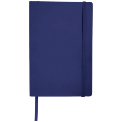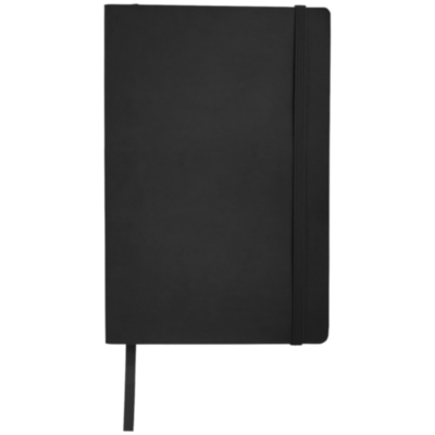 Soft touch cover notebook (A5 size reference) with built-in elastic closure, ribbon page marker, document pocket on interior back cover and 80 sheets (80gsm) of lined paper.