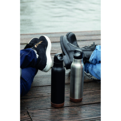 Vacuum insulated leak proof flask with durable 304 SS inside and 201 outside. Unique cork detail on the bottom. Keeps your drinks hot for up to 5h and cold up to 15h. Content: 600ml.