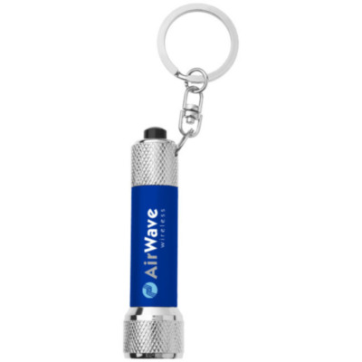 Bright 5 LED key light with push button power switch. Split metal key ring. Batteries included.
