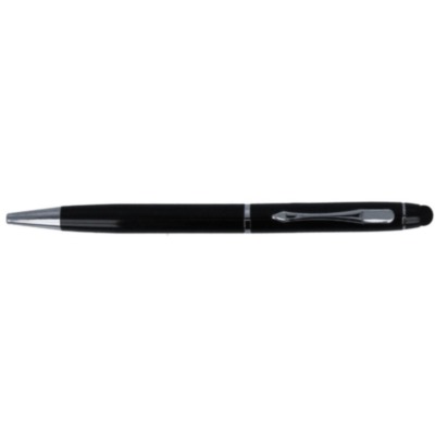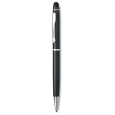 Twist action ball pen in aluminium twist stylus. Blue ink. Presented in paper box.