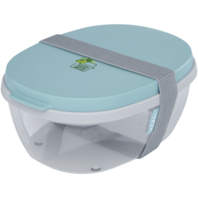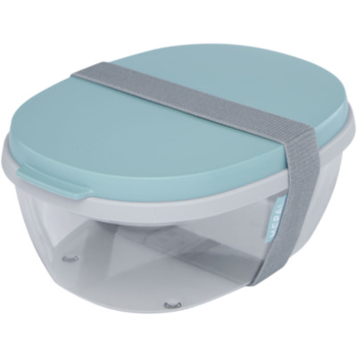Salad box with large 1300 ml transparent compartment that is big enough to mix the salad at the time of eating. The top compartment offers space for bread or cutlery. Includes a small compartment for dressing or nuts. Unbreakable and dishwasher safe. Comes with an elastic band closure. BPA free. 2 years Mepal warranty.
