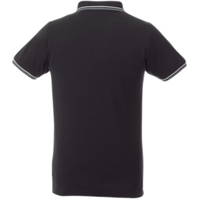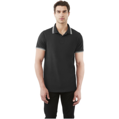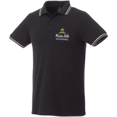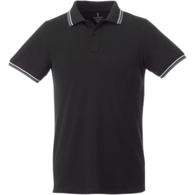 Flat knit collar. Flat knit rib cuffs. Contrast coloured tipping on collar and sleeves. Two button placket. Dyed-to-match engraved buttons. Heat transfer main label for tagless comfort.