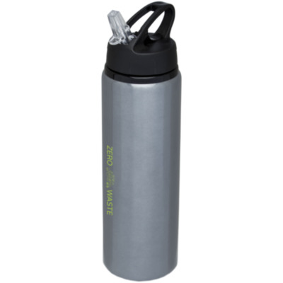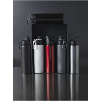 Single-walled aluminium bottle screw-on lid with a flip-top drinking spout. The lid features a handle for easy carrying. BPA free. Volume capacity is 800 ml.