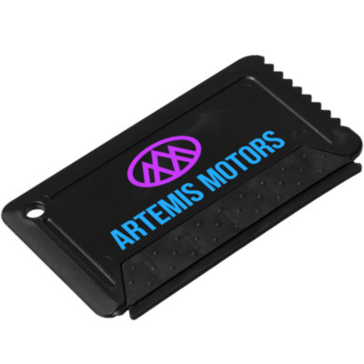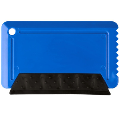 Handy ice scraper with integral rubber strip that is compact for easy storage.